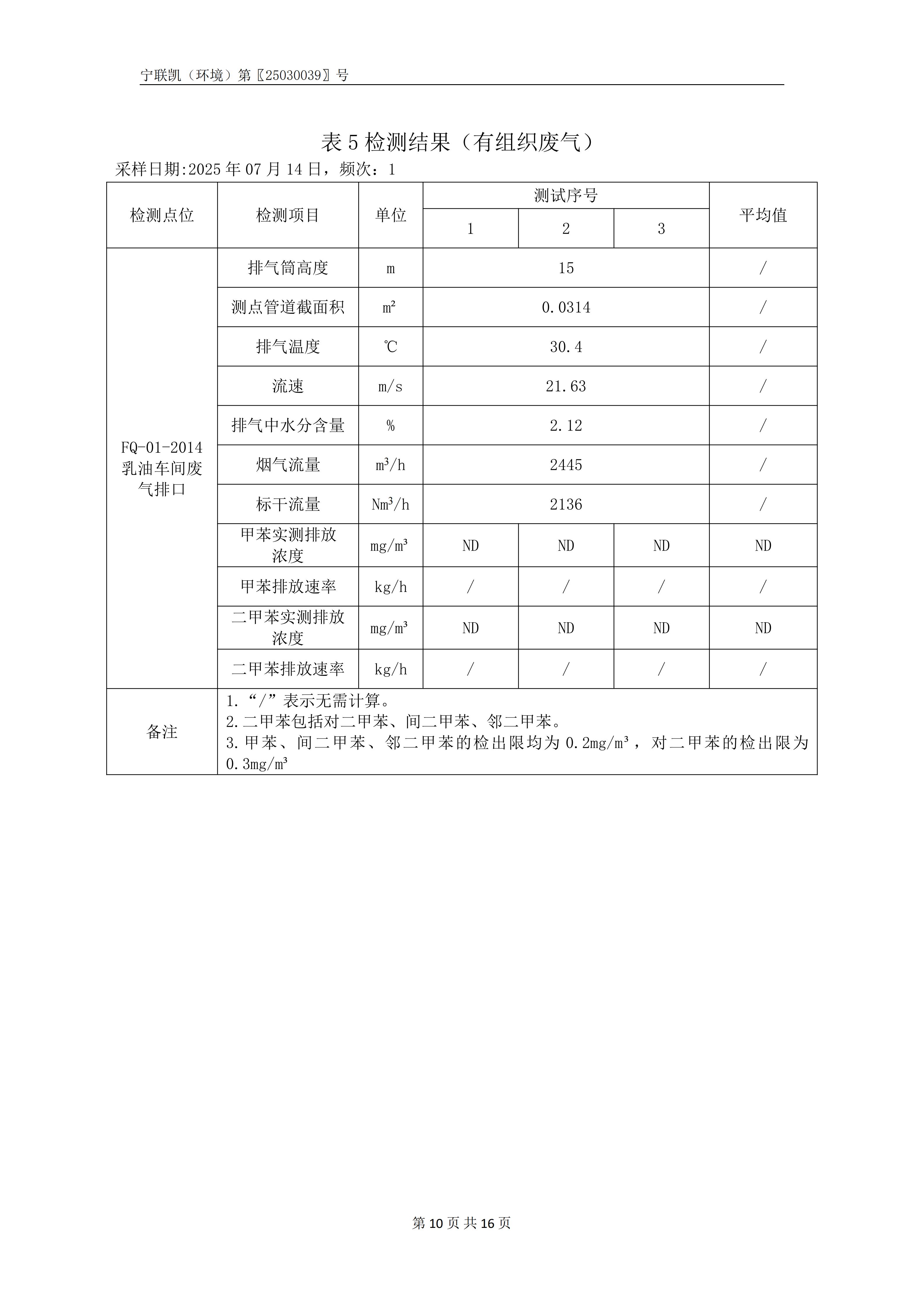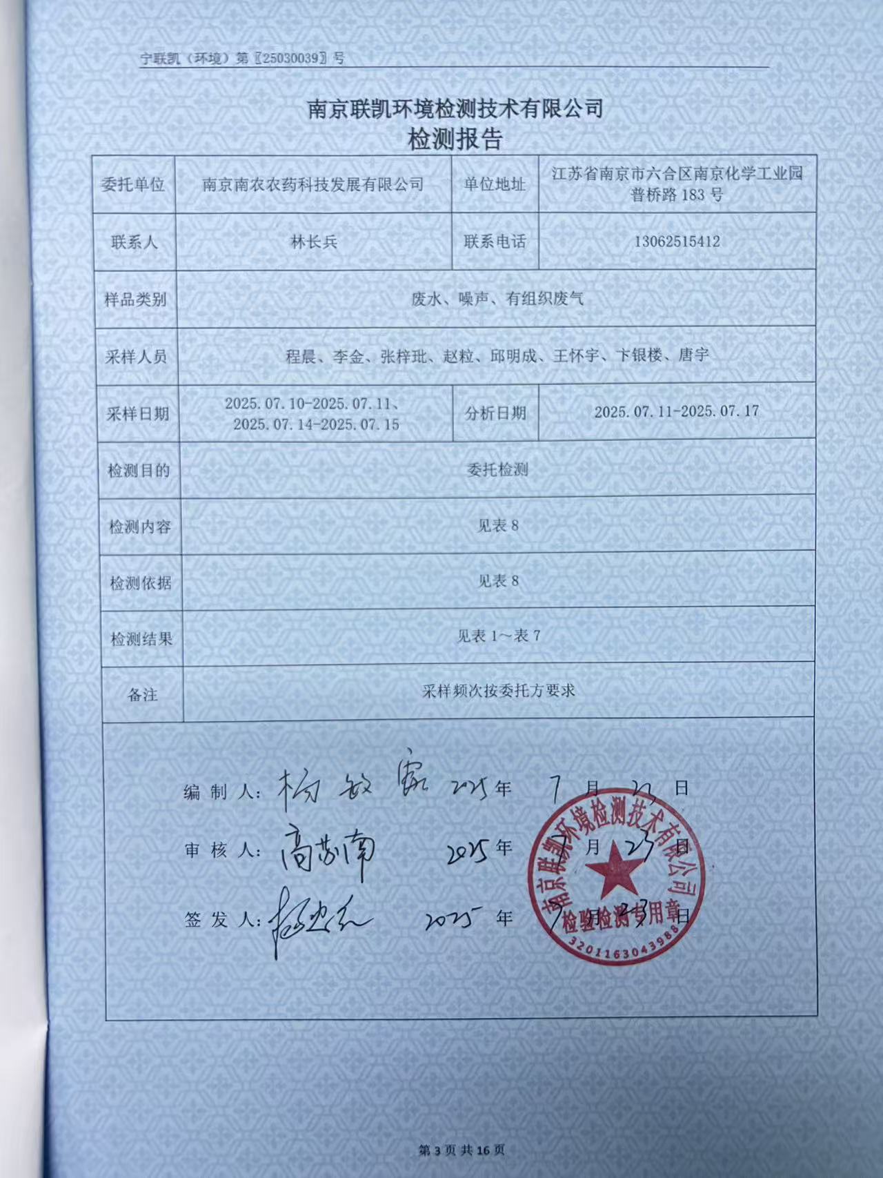 2025年第三季度检测报告
